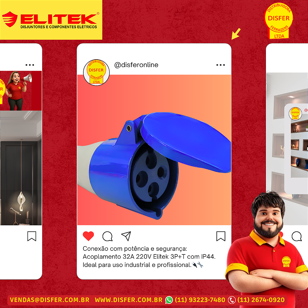 O Acoplamento Industrial Elitek E42B59 foi desenvolvido para suportar correntes de até 32A em 220V, ideal para ambientes que exigem maior potência elétrica. Com grau de proteção IP44, é resistente a poeira e respingos d’água, garantindo durabilidade e confiabilidade em instalações industriais e comerciais.