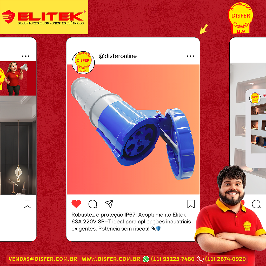 Projetado para atender aplicações industriais de alto desempenho, o Acoplamento Industrial Elitek 1986/E45B59 suporta até 63A em 220V, oferecendo confiabilidade elétrica e máxima segurança. Com proteção IP67, ele resiste a poeira e imersão temporária em água, sendo ideal para ambientes agressivos ou externos.