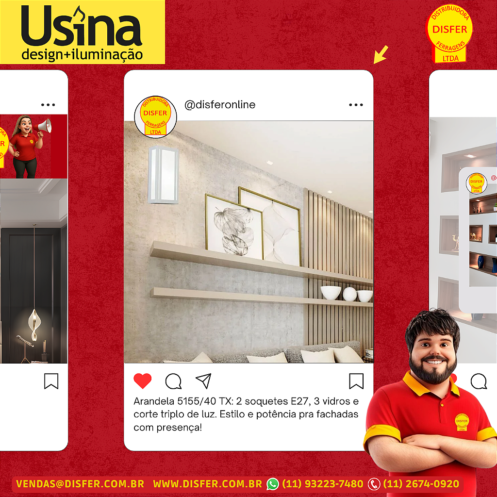 Arandela Externa 3 Vidros 5155/40 2xE27 – Usina Design