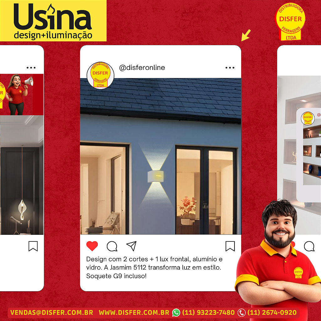 Corpo em alumínio e frente com 3 vidros encaixados, tudo pensado pra valorizar a luz e manter a resistência com estética moderna. O visual é clean, mas com presença marcante.