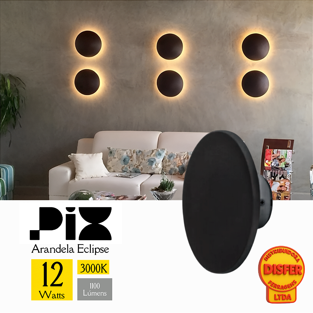 Arandela LED Eclipse 12W 3000K 1100lm Preta – PIX