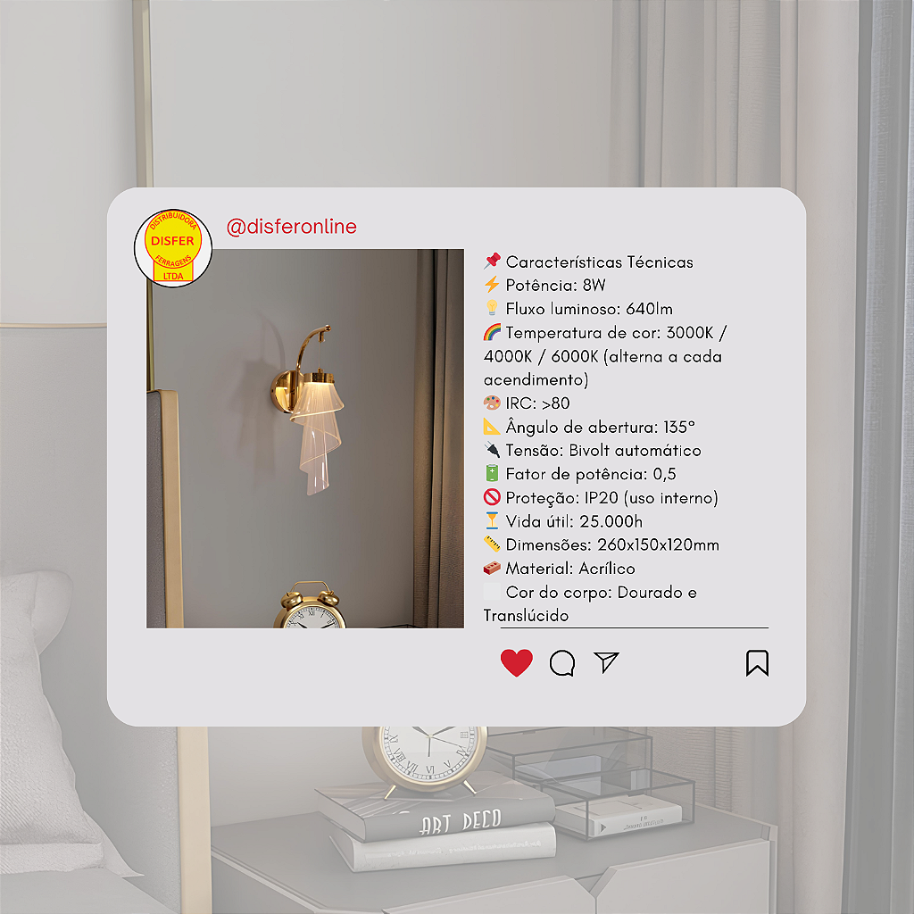 Com design moderno e elegante, corpo em acrílico translúcido e luz bem distribuída em 135° de abertura, ela se encaixa com harmonia em salas, corredores, quartos e áreas comuns internas. E tudo isso com eficiência de sobra: 640 lúmens consumindo apenas 8W.