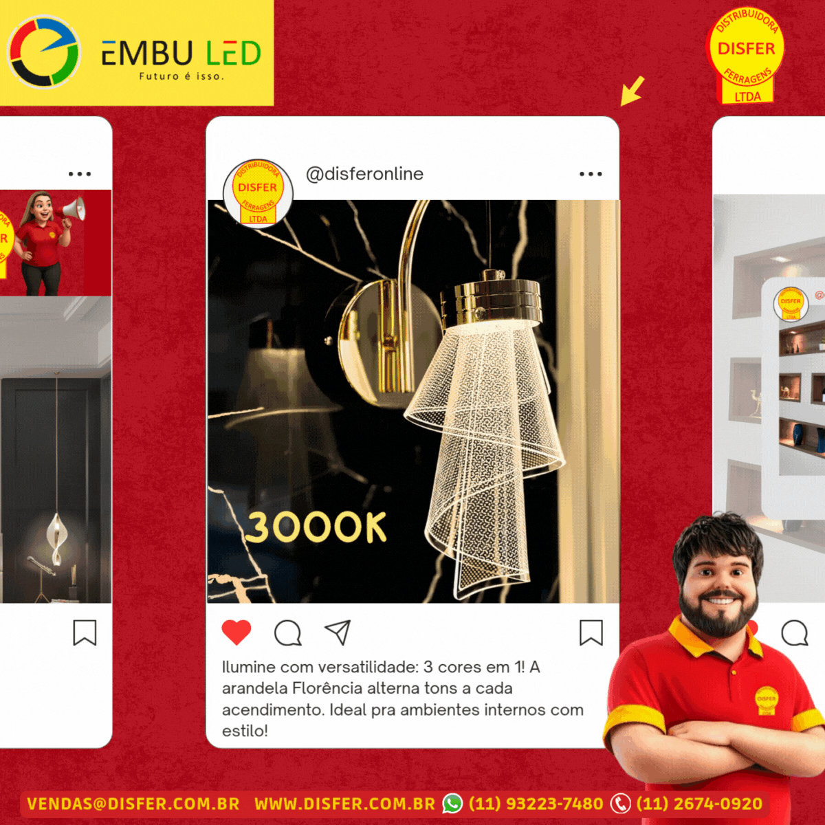 Quer mudar a atmosfera do ambiente com um simples toque (ou melhor, acendimento)? A Arandela Florência 8W da Embu LED entrega isso e muito mais: com sua tecnologia multitemperatura, a cor da luz muda a cada vez que é ligada — entre 3000K (quente), 4000K (neutra) e 6000K (fria). É perfeita pra quem busca flexibilidade sem complicação.