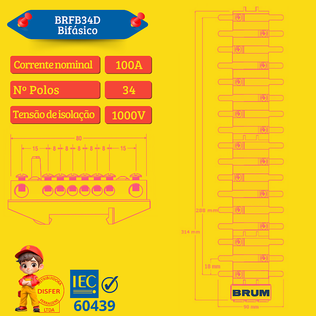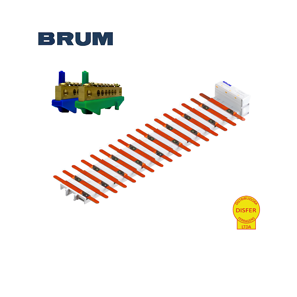 Se você busca segurança, organização e eficiência na distribuição elétrica, o Barramento de Distribuição Bifásico 34 Polos 100A da Brum (BRFB34D) é a escolha certa! Ele garante uma instalação elétrica otimizada e confiável, acompanhando barramentos de neutro e terra para um sistema ainda mais completo.