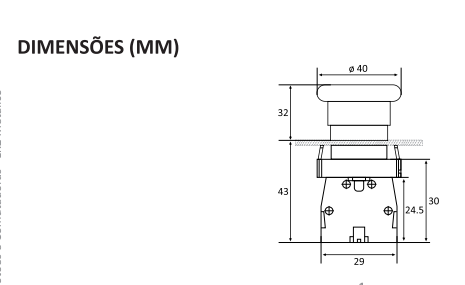 Botão tipo cogumelo de 40mm: Formato ergonômico para acionamento rápido e seguro.