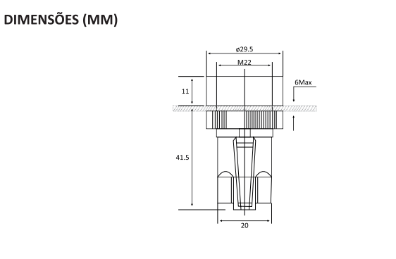✔ Acionamento pulsante: Retorna automaticamente à posição original após pressionado.