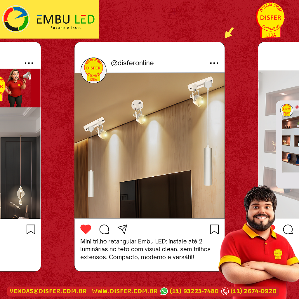 Ideal para projetos compactos, minimalistas e funcionais — tanto residenciais quanto comerciais — onde o visual limpo é essencial e a mobilidade dos pontos de luz faz toda a diferença.