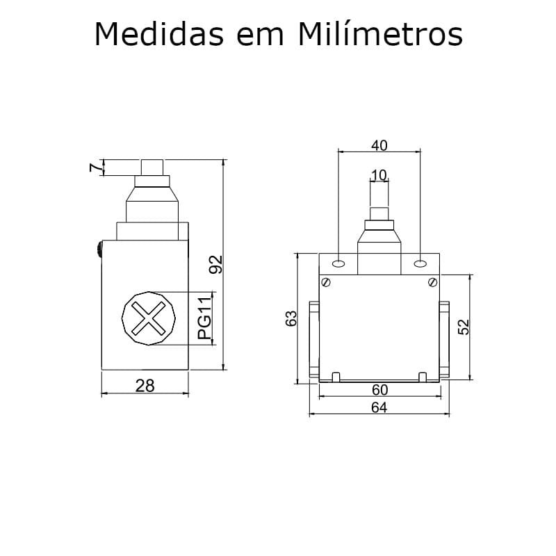 Este modelo é projetado com um pistão reto e possui contatos 1NA + 1NF (um normalmente aberto e um normalmente fechado). Isso proporciona flexibilidade e confiabilidade em diversas aplicações, permitindo que a chave atue de forma eficiente em diferentes cenários.