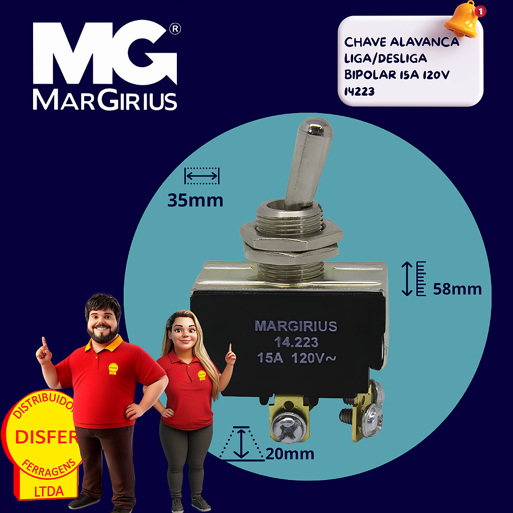 Se você precisa de uma chave com alto desempenho e segurança, a Chave Alavanca Liga/Desliga Bipolar 15A 120V 14223 da Margirius é exatamente o que você procura! Perfeita para controle de circuitos elétricos em instalações industriais ou comerciais, ela combina resistência, funcionalidade e a qualidade que só a Margirius oferece.