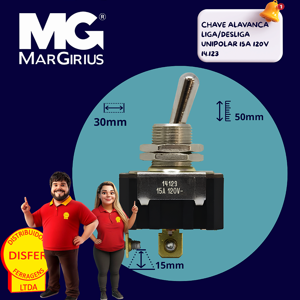 Clássica, confiável e cheia de atitude! A chave alavanca Liga/Desliga 14123 da Margirius é daquelas que resolvem o problema sem frescura. É girou, ligou. Girou de novo, desligou. Simples assim!