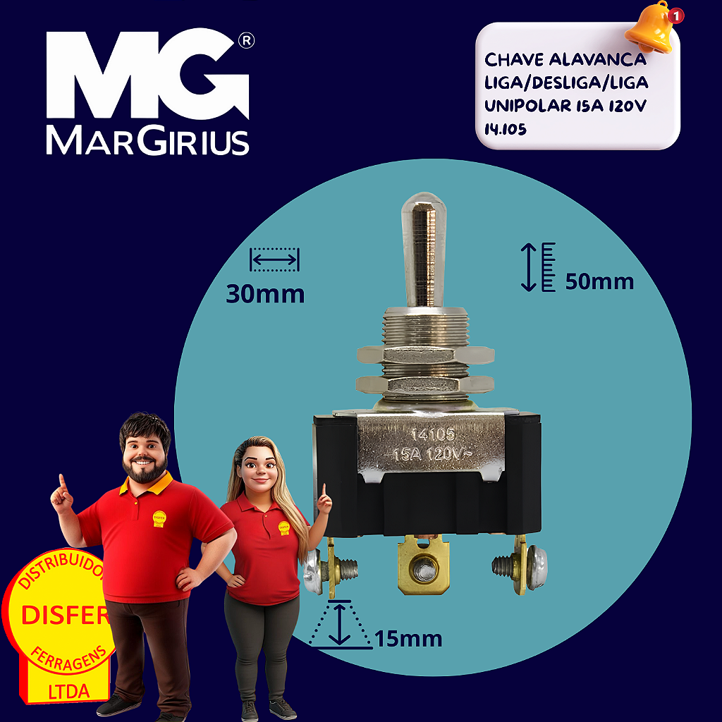 🔁 Chave Alavanca de Pulso Liga/Desliga/Liga Unipolar 14105 – Margirius