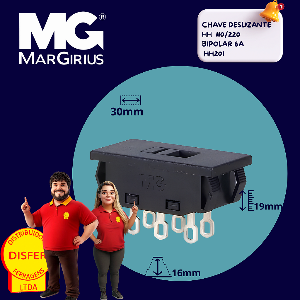 Por que escolher a Margirius? Com a Chave Deslizante HH201, você tem a certeza de que seu sistema elétrico está em boas mãos. A Margirius é reconhecida pela sua qualidade e confiabilidade, oferecendo soluções práticas e seguras para seus projetos elétricos.