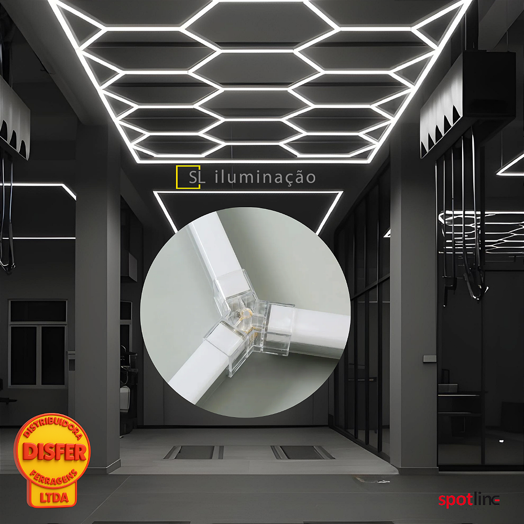 O Conector Transparente T5 em formato Y é um dos mais versáteis quando o objetivo é criar designs dinâmicos e modernos. Ele permite distribuir a iluminação em três direções anguladas, ideal para desenhos orgânicos, estruturas criativas e composições com estética diferenciada.