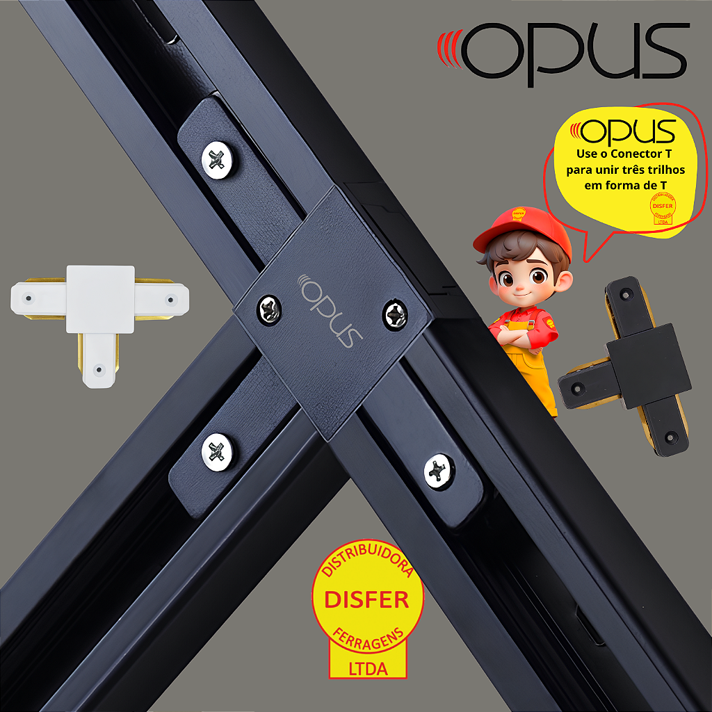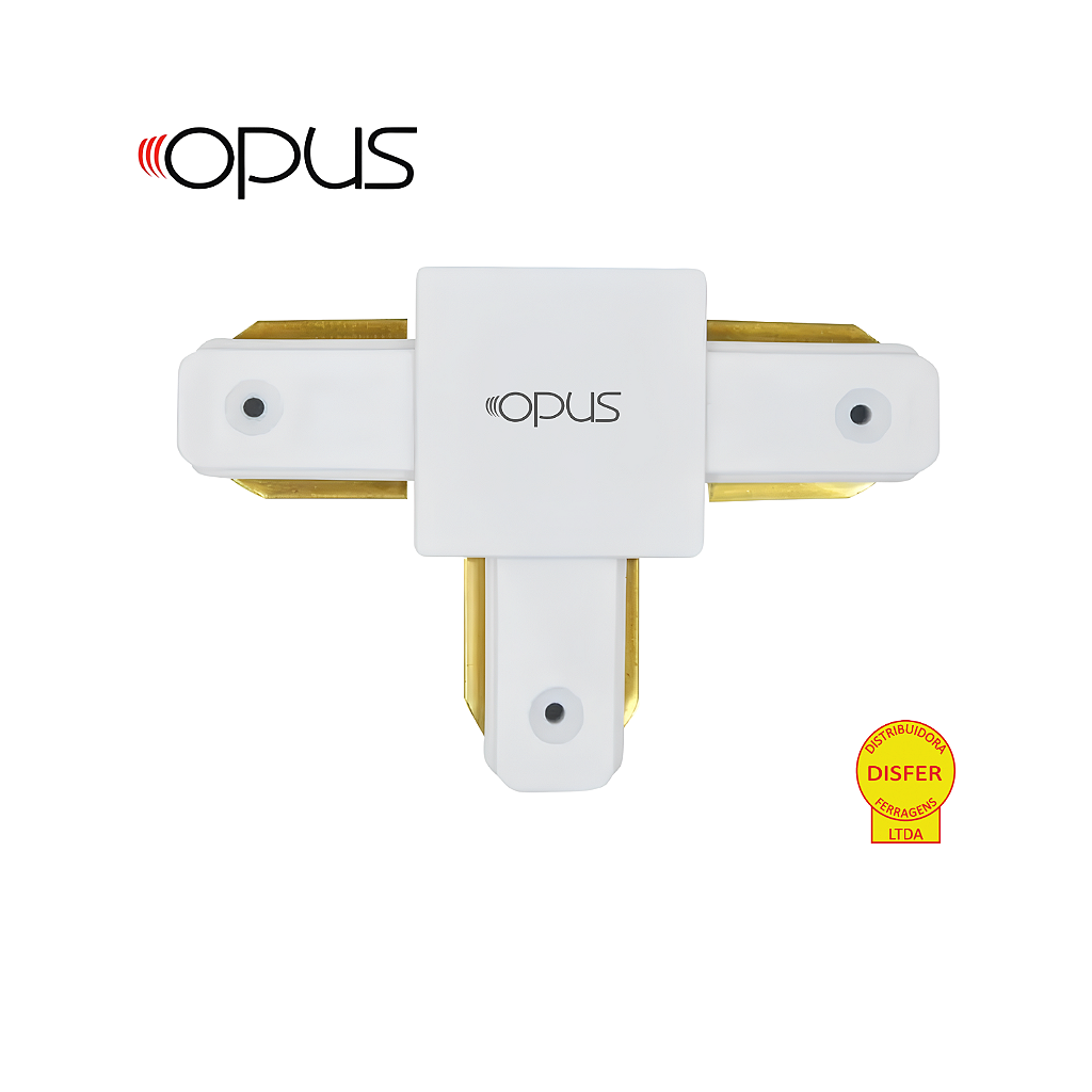 Ajuste sua iluminação com mais flexibilidade! O Conector T da Opus permite a união de três trilhos eletrificados em formato T, garantindo um layout versátil e personalizado para seu projeto de iluminação.