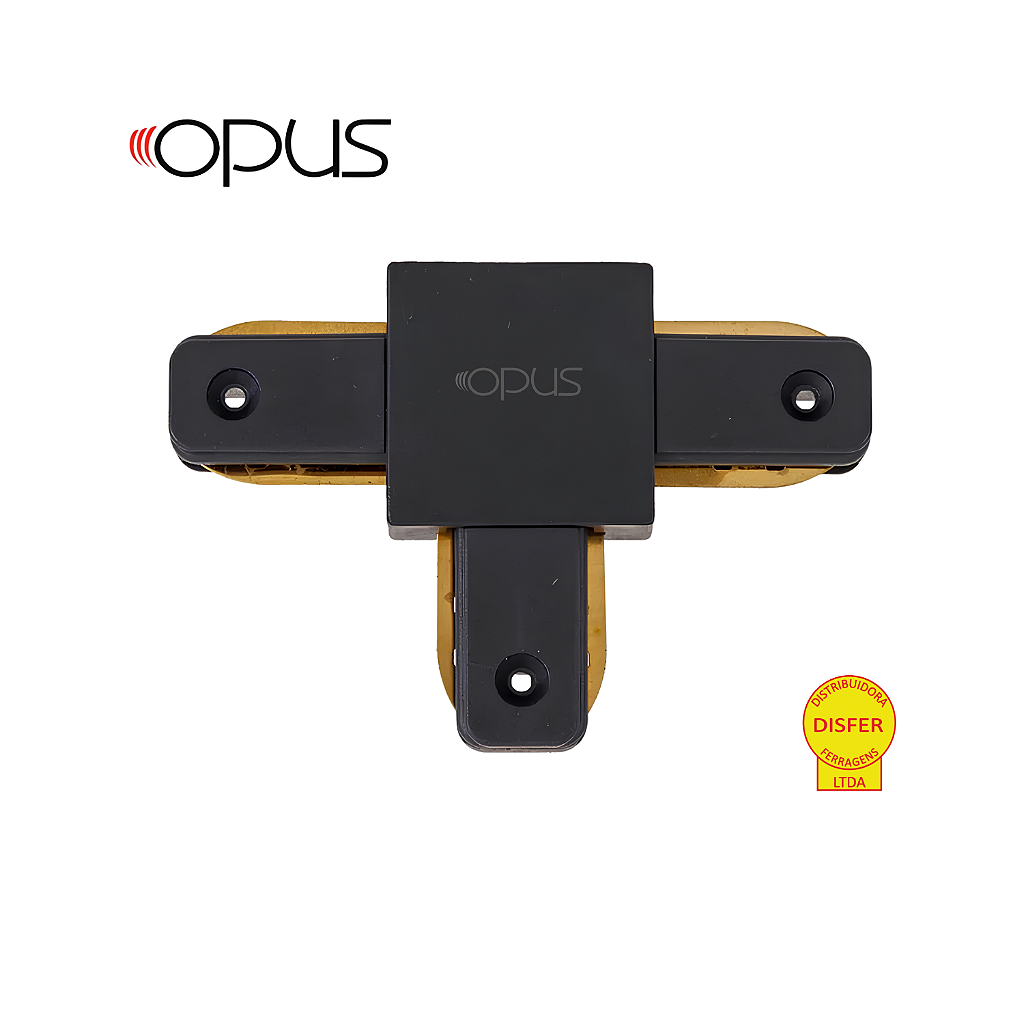 Ajuste sua iluminação com mais flexibilidade! O Conector T da Opus permite a união de três trilhos eletrificados em formato T, garantindo um layout versátil e personalizado para seu projeto de iluminação.