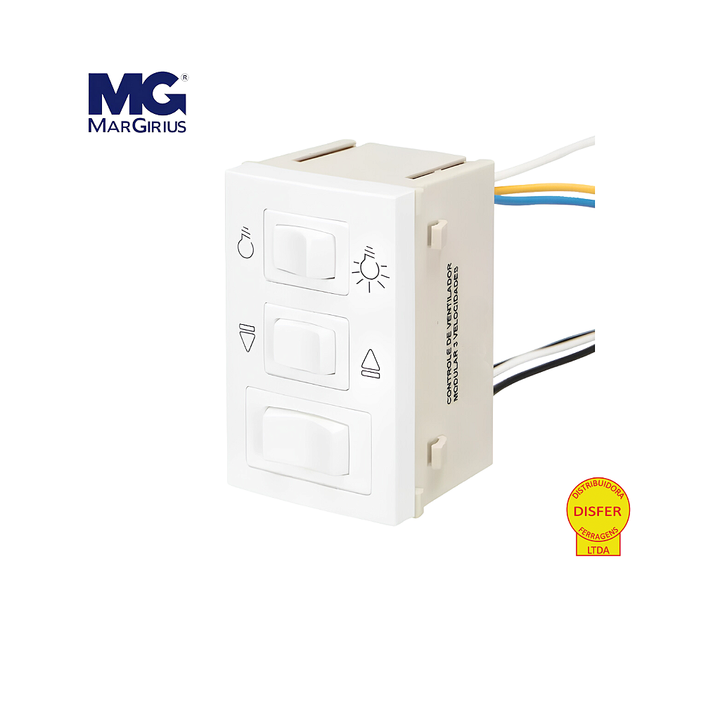 Controle de Ventilador Modular 3 Velocidades 127V Branco – Linha Sleek – Margirius