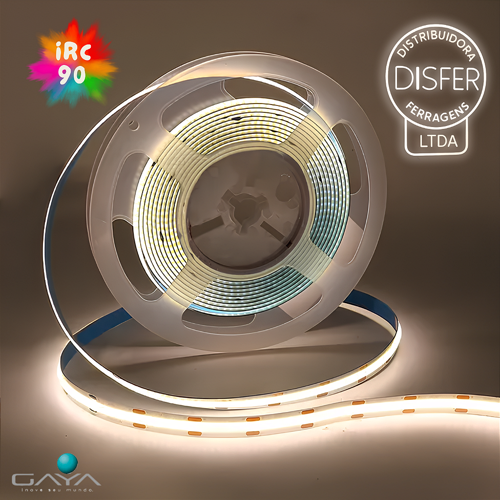 Fita COB LED 9W/m 900lm/m IP20 IRC90 4000K 24V Rolo com 5m – Gaya