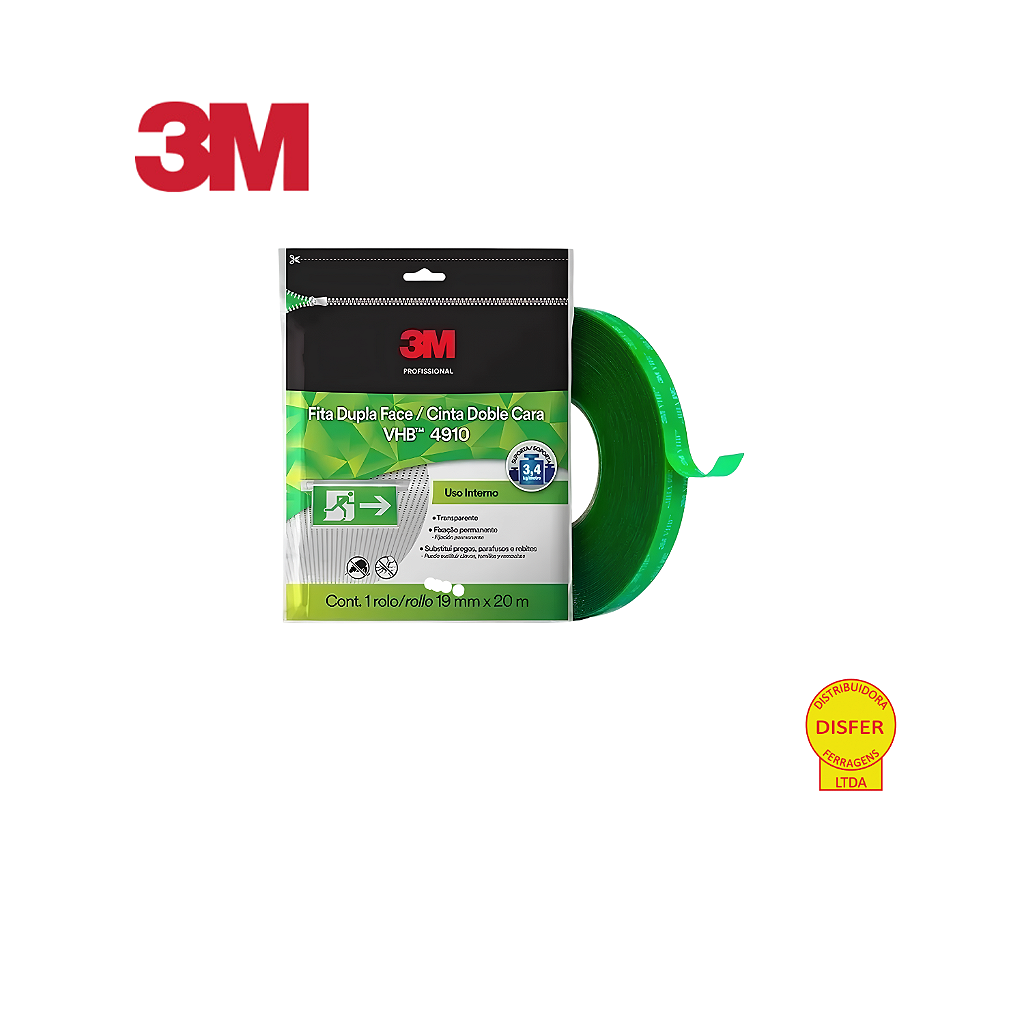 A Fita Dupla Face VHB 3M é a solução ideal para fixações seguras e duráveis em ambientes internos. Com tecnologia avançada, substitui pregos e parafusos, garantindo uma aderência poderosa e acabamento limpo.