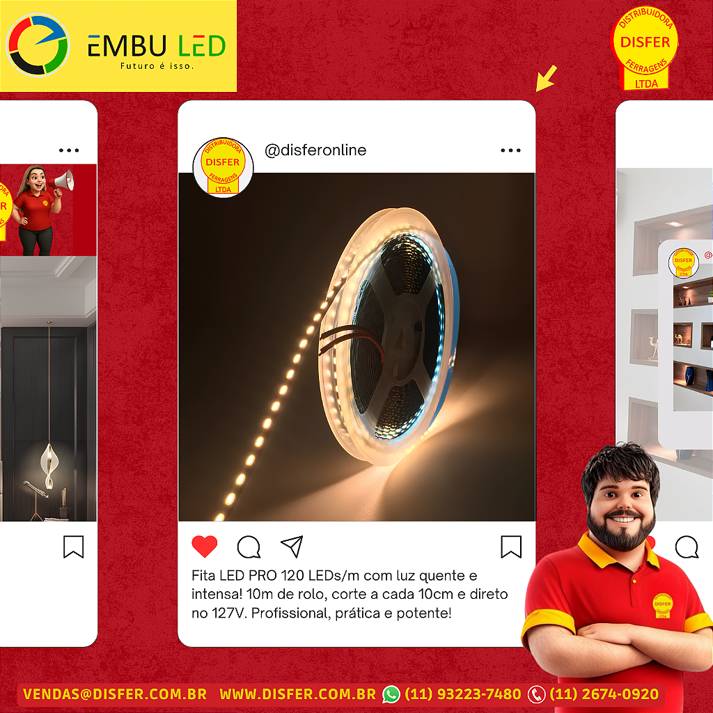 A Fita LED PRO da Embu LED é ideal pra quem busca um acabamento profissional com iluminação contínua e uniforme, seja em móveis planejados, sancas, prateleiras ou detalhes arquitetônicos.