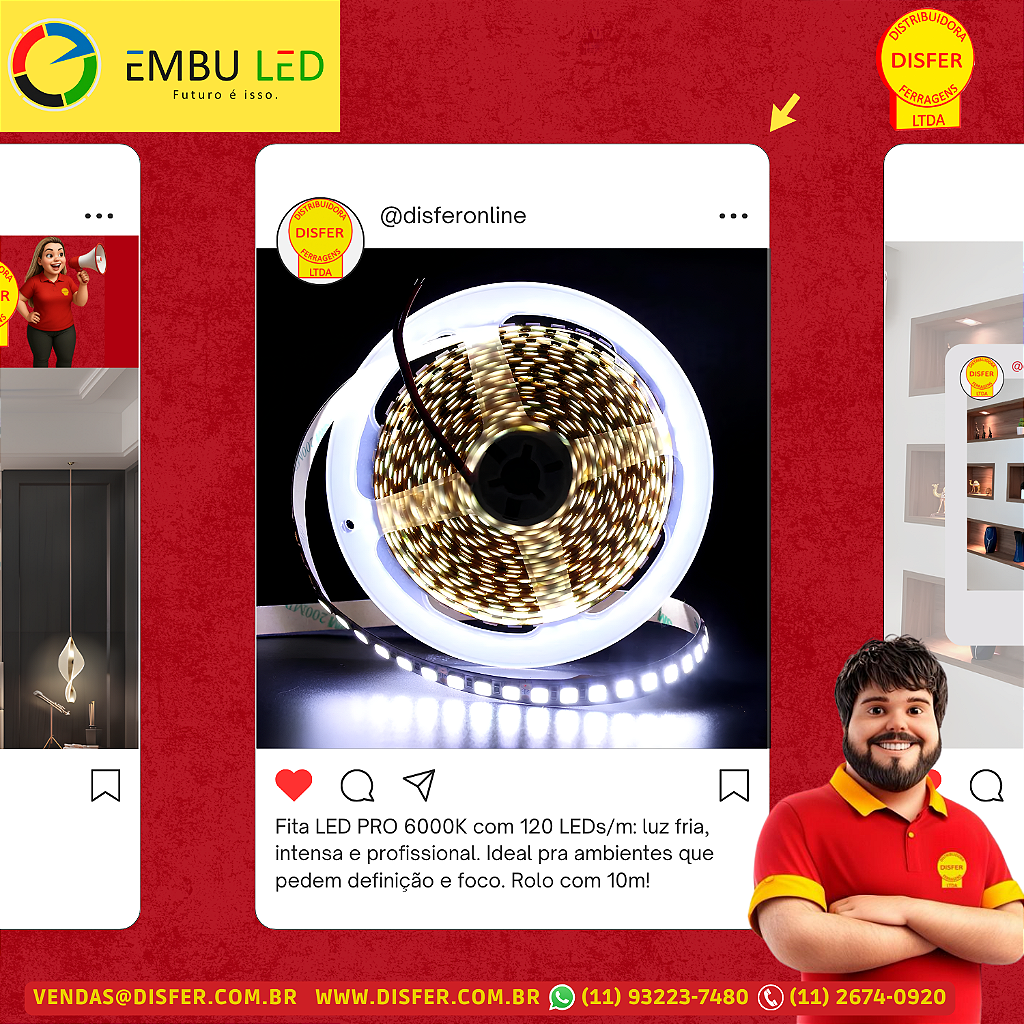 A Fita LED PRO Embu LED na versão 6000K é a escolha certa pra quem precisa de iluminação branca fria, com alto nível de definição e destaque. Ideal para cozinhas, banheiros, áreas de serviço ou ambientes que exigem clareza e foco, essa fita oferece luz intensa, com visual moderno e acabamento limpo.