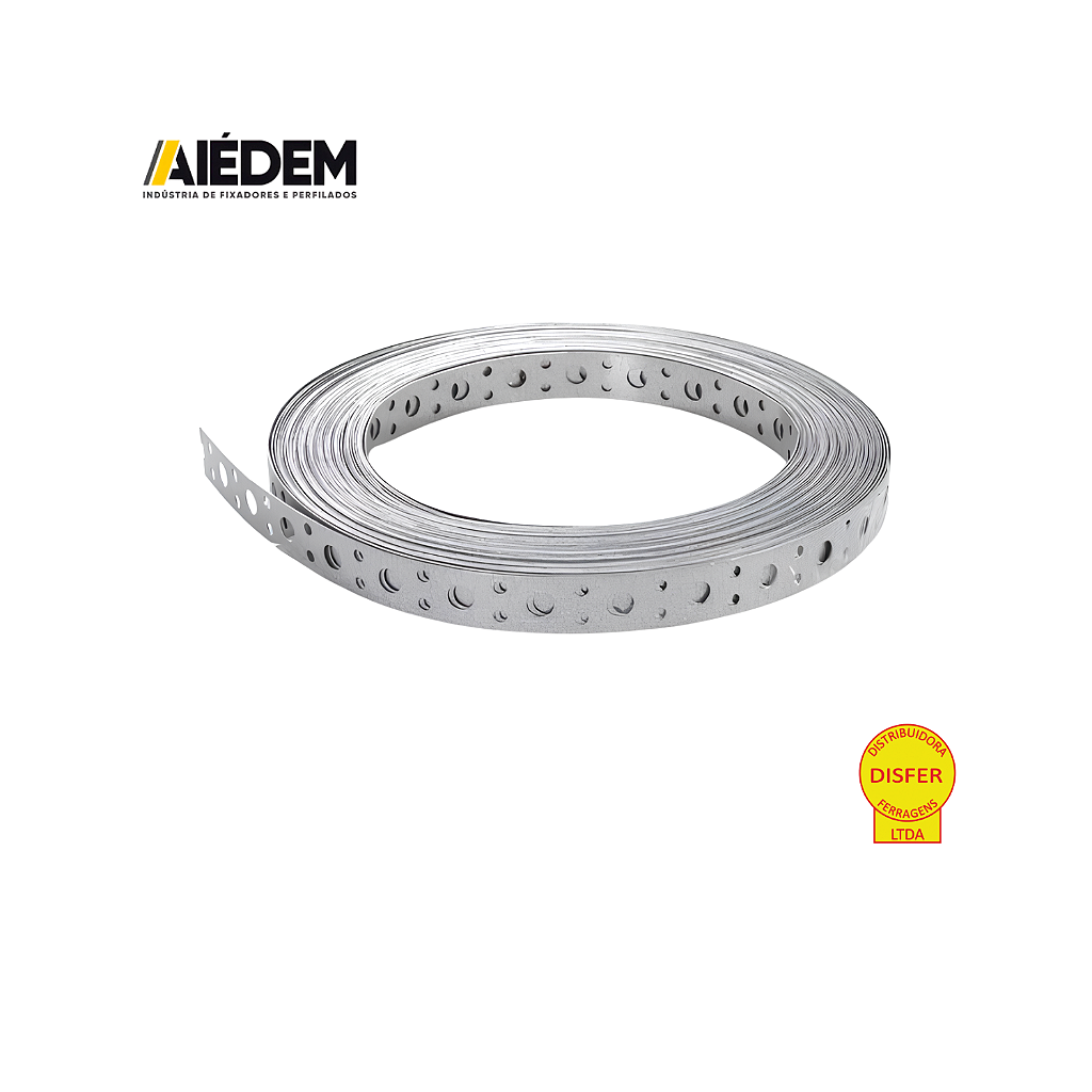 A Fita Perfurada de Aço Aiédem é ideal para fixações estruturais, suportes e instalações diversas. Feita em aço galvanizado, oferece alta resistência e durabilidade, garantindo segurança em diferentes aplicações.