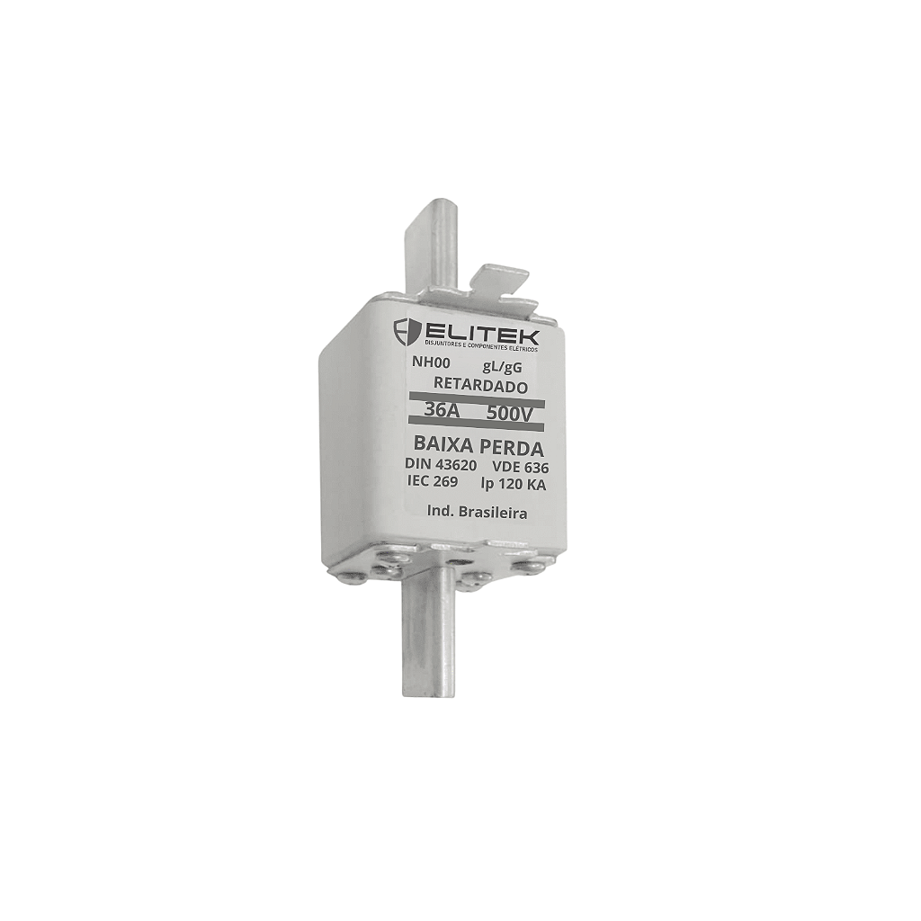 O Fusível NH00 36A da Elitek é um dispositivo de proteção elétrica para circuitos de baixa a média potência que necessitam de resposta segura e gradual a picos e sobrecargas. Com categoria gL/gG (retardado), é indicado para cargas sensíveis, motores de pequeno porte, comandos e quadros de distribuição.