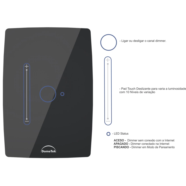 Você está pronto para dar um passo rumo à modernidade? Apresentamos o Interruptor Inteligente Dimmer 1 PAD Slide Touch Wifi da linha Diamond da Dometek, a solução perfeita para automatizar sua casa e trazer mais conforto ao seu dia a dia!