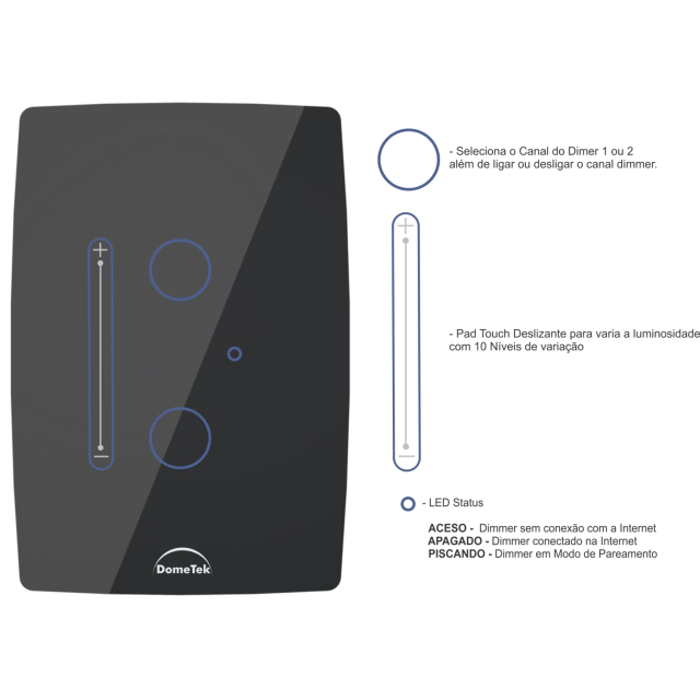 Você está pronto para dar um passo rumo à modernidade? Apresentamos o Interruptor Inteligente Dimmer 2 PADs Slide Touch Wifi da linha Diamond da Dometek, a solução perfeita para automatizar sua casa e trazer mais conforto ao seu dia a dia!
