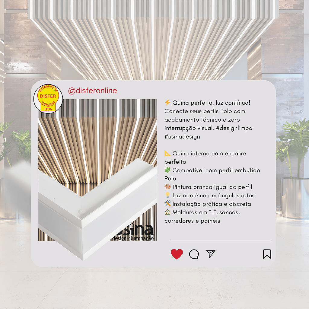 Exemplo prático: Em corredores com iluminação perimetral, o conector permitiu que a linha de luz se estendesse por duas paredes adjacentes, mantendo o visual limpo e contínuo.