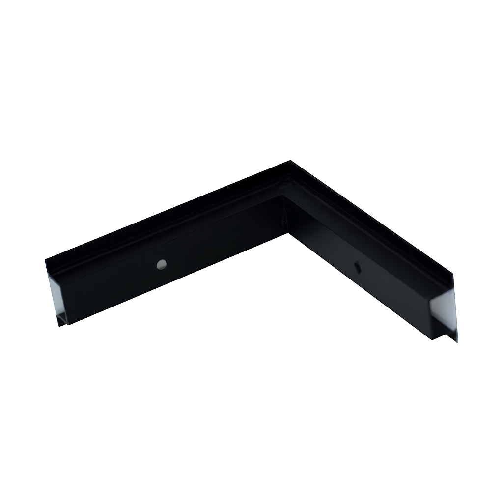 O conector em quina para o perfil Wood permite unir duas peças do perfil em ângulo reto (90°), ideal para projetos com contornos em “L” ou traçados de luz com voltas suaves e planejadas.