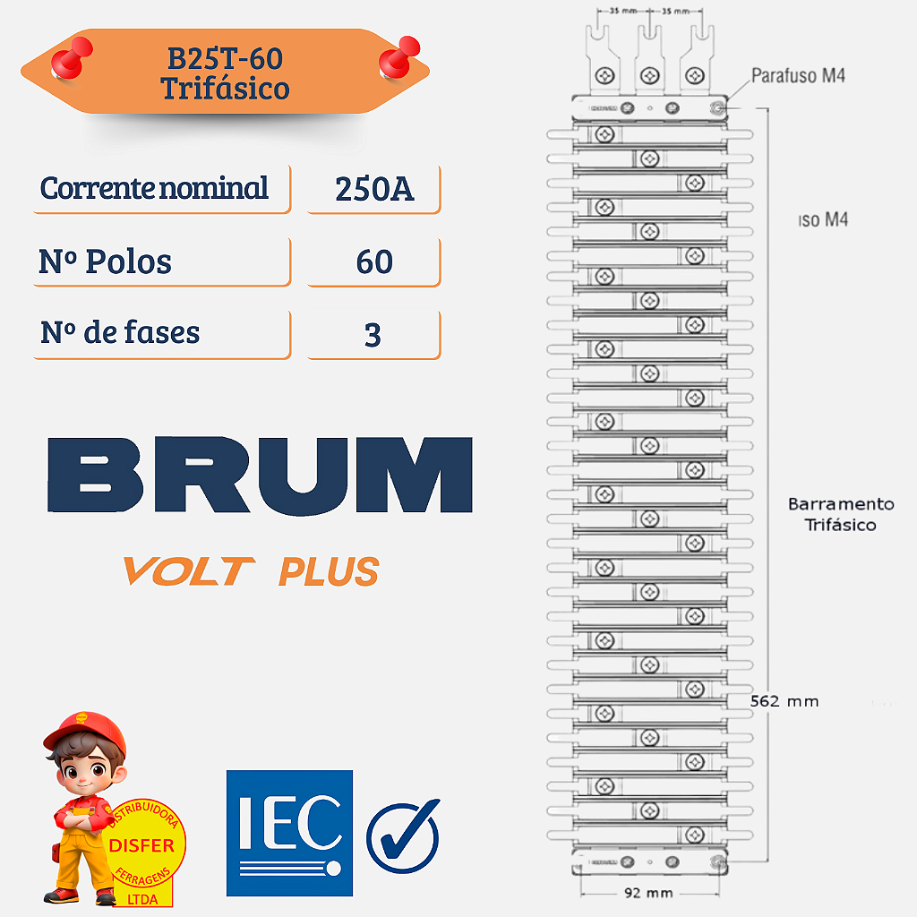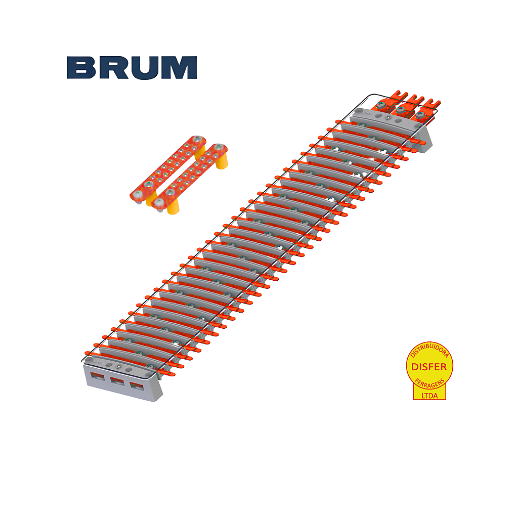 Se você precisa de máxima eficiência e segurança na distribuição elétrica, o Kit Barramento de Cobre Trifásico VOLT PLUS 60 Polos 250A da Brum (B25T-60) é a solução ideal! Projetado para quadros elétricos de alta demanda, ele oferece excelente capacidade de condução elétrica e já acompanha barramentos de neutro e terra, além de trilhos DIN, garantindo uma instalação completa e organizada.