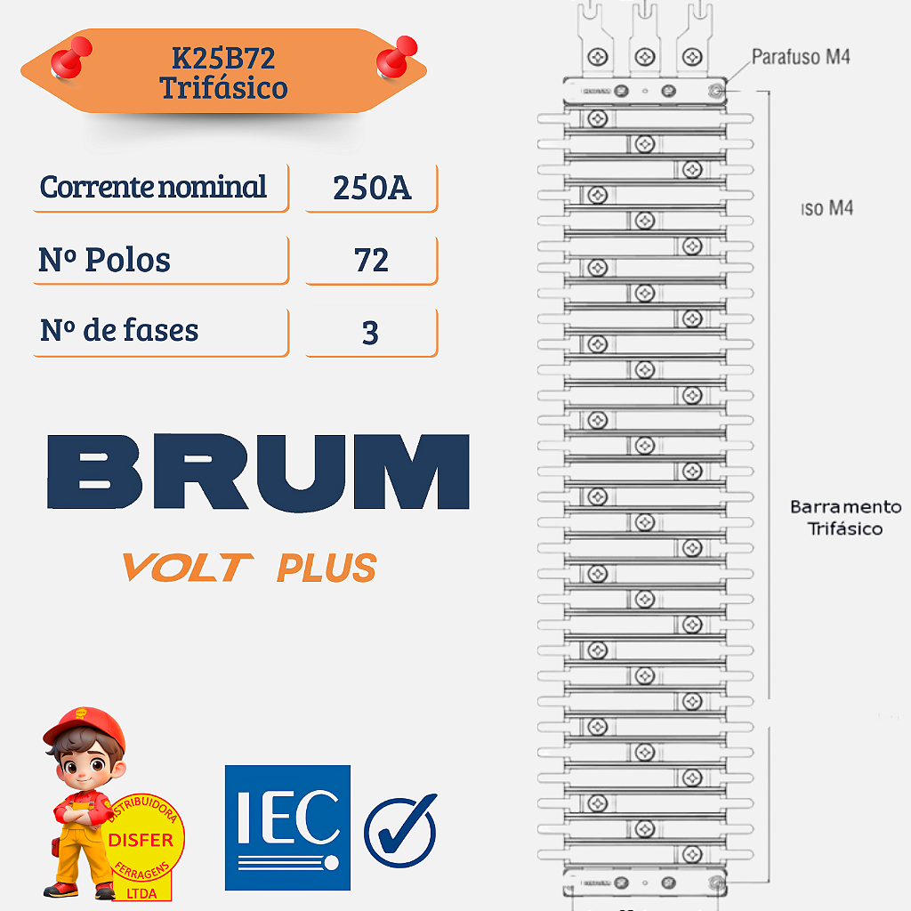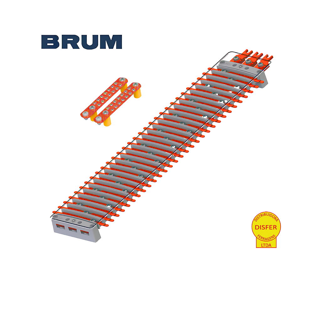 Se você precisa de máxima eficiência e segurança na distribuição elétrica, o Kit Barramento de Cobre Trifásico VOLT PLUS 72 Polos 250A da Brum (K25B72) é a solução ideal! Projetado para quadros elétricos de alta demanda, ele oferece excelente capacidade de condução elétrica e já acompanha barramentos de neutro e terra, além de trilhos DIN, garantindo uma instalação completa e organizada.
