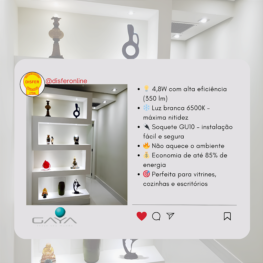 “Com soquete GU10, a instalação é rápida e segura — sem precisar de transformador.”
