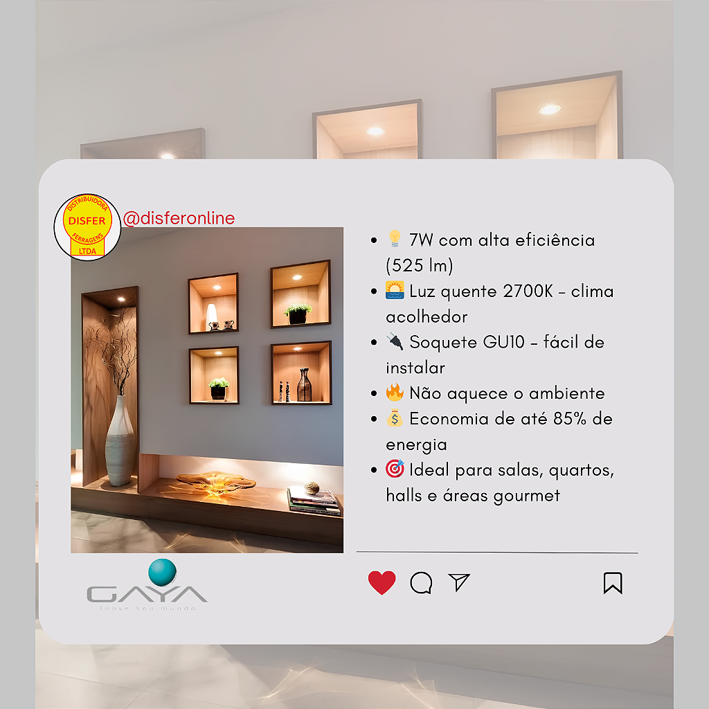 “Com soquete GU10, basta encaixar e girar — instalação prática e sem complicação.”