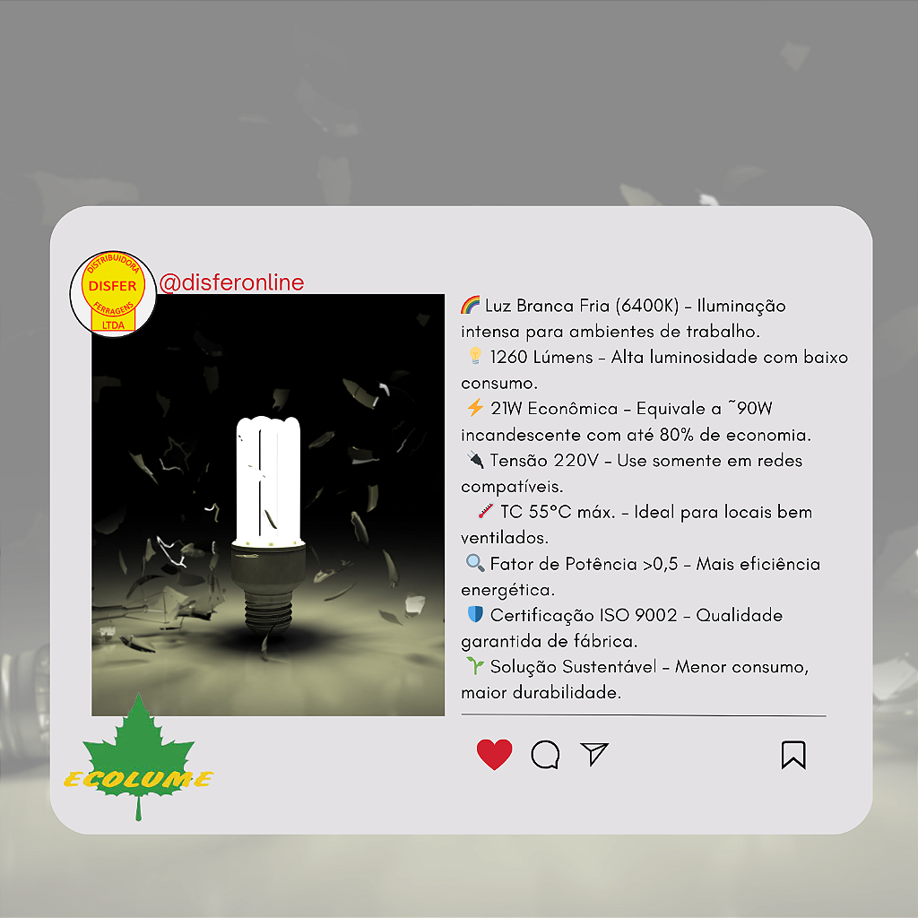 Lâmpada Fluorescente Econômica Ecolume – iluminação eficiente com até 80% de economia.