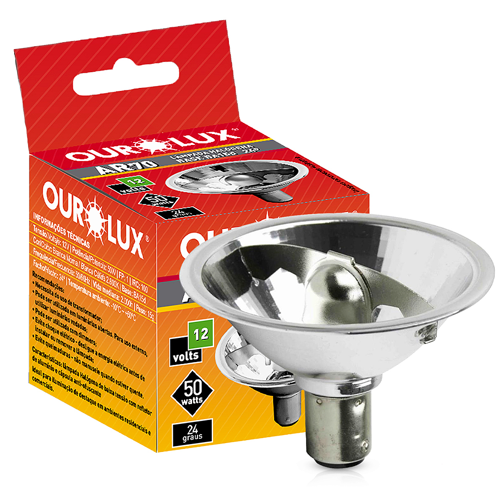A Lâmpada Halógena AR70 da Ourolux é um clássico da iluminação arquitetônica, reconhecida por seu foco preciso, reprodução perfeita das cores e luz quente acolhedora.