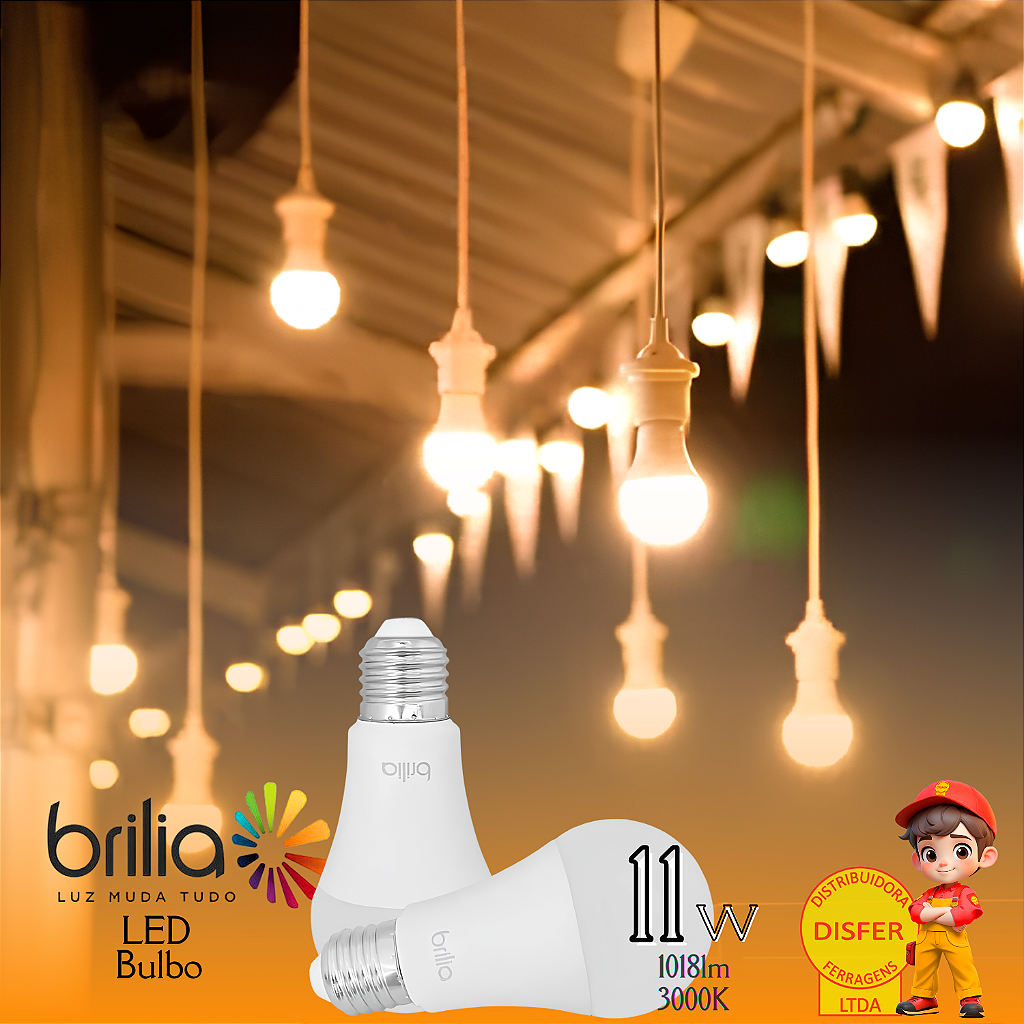 Se você busca uma iluminação suave, confortável e econômica, a Lâmpada LED Bulbo 11W 3000K Bivolt da Brilia é a escolha perfeita! Com uma luz quente e agradável, ela cria um ambiente acolhedor e sofisticado, ideal para qualquer espaço da sua casa ou comércio.