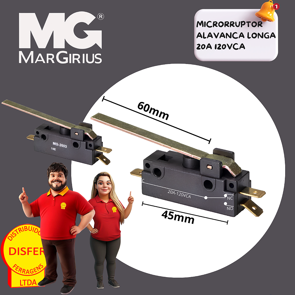 Se você precisa de precisão, robustez e aquele clique confiável que nunca falha, o Microrruptor MG-2603 da Margirius com alavanca longa é o parceiro ideal pro seu projeto!