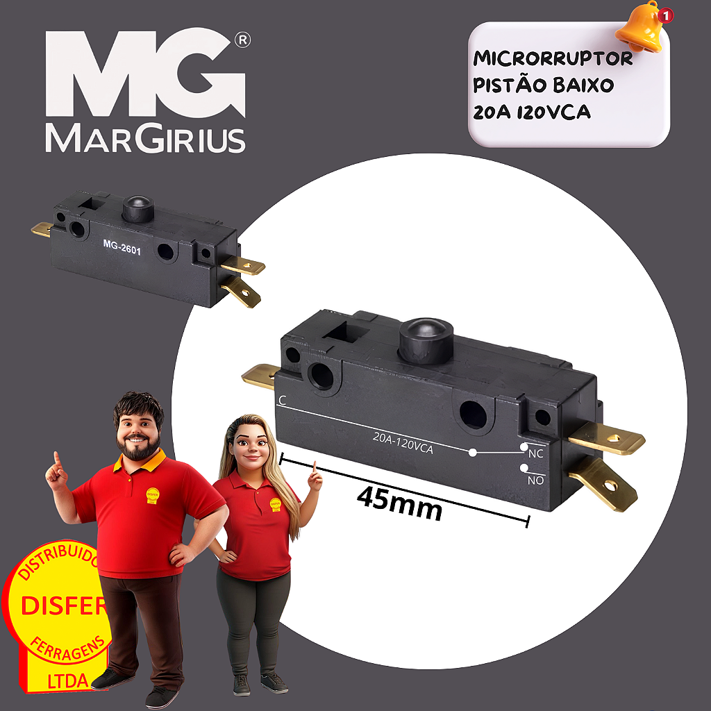 ⚙️ Microrruptor Pistão Baixo 20A 120V MG-2601 – Margirius