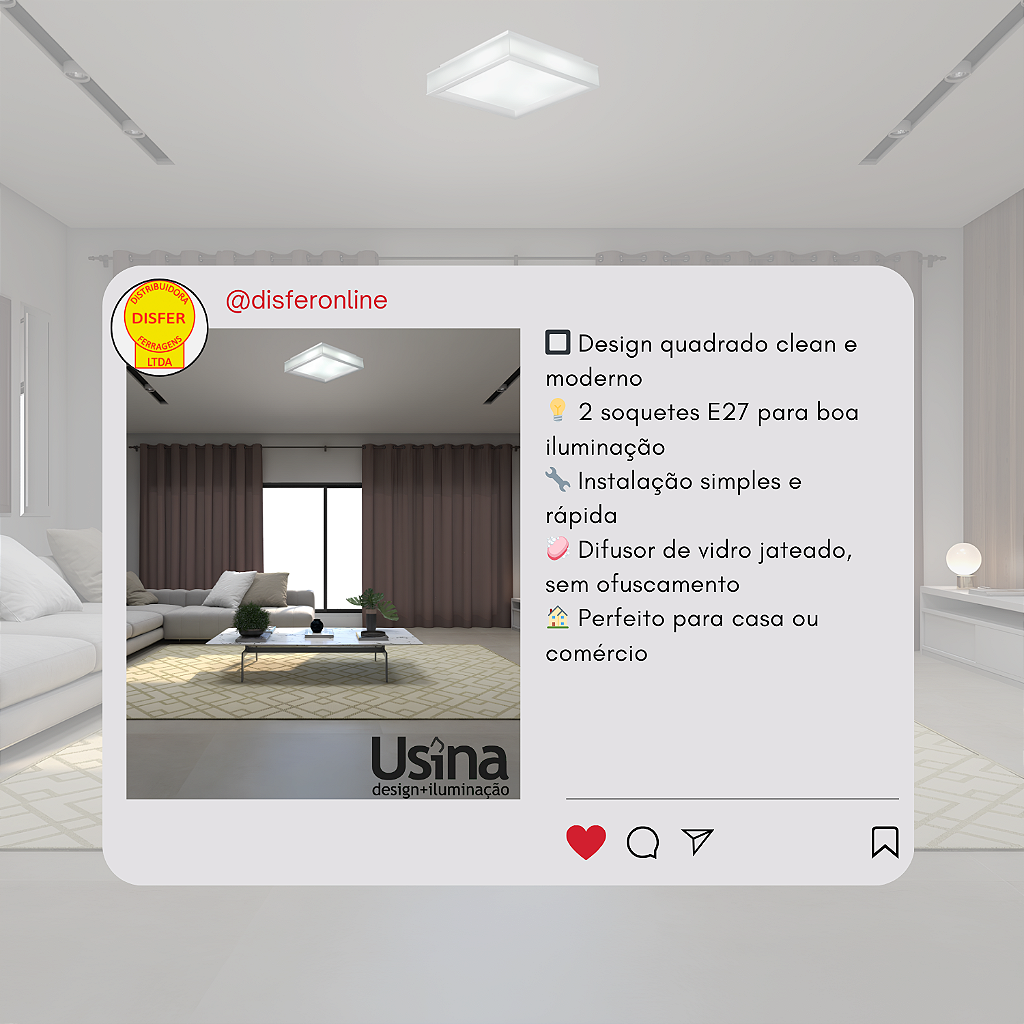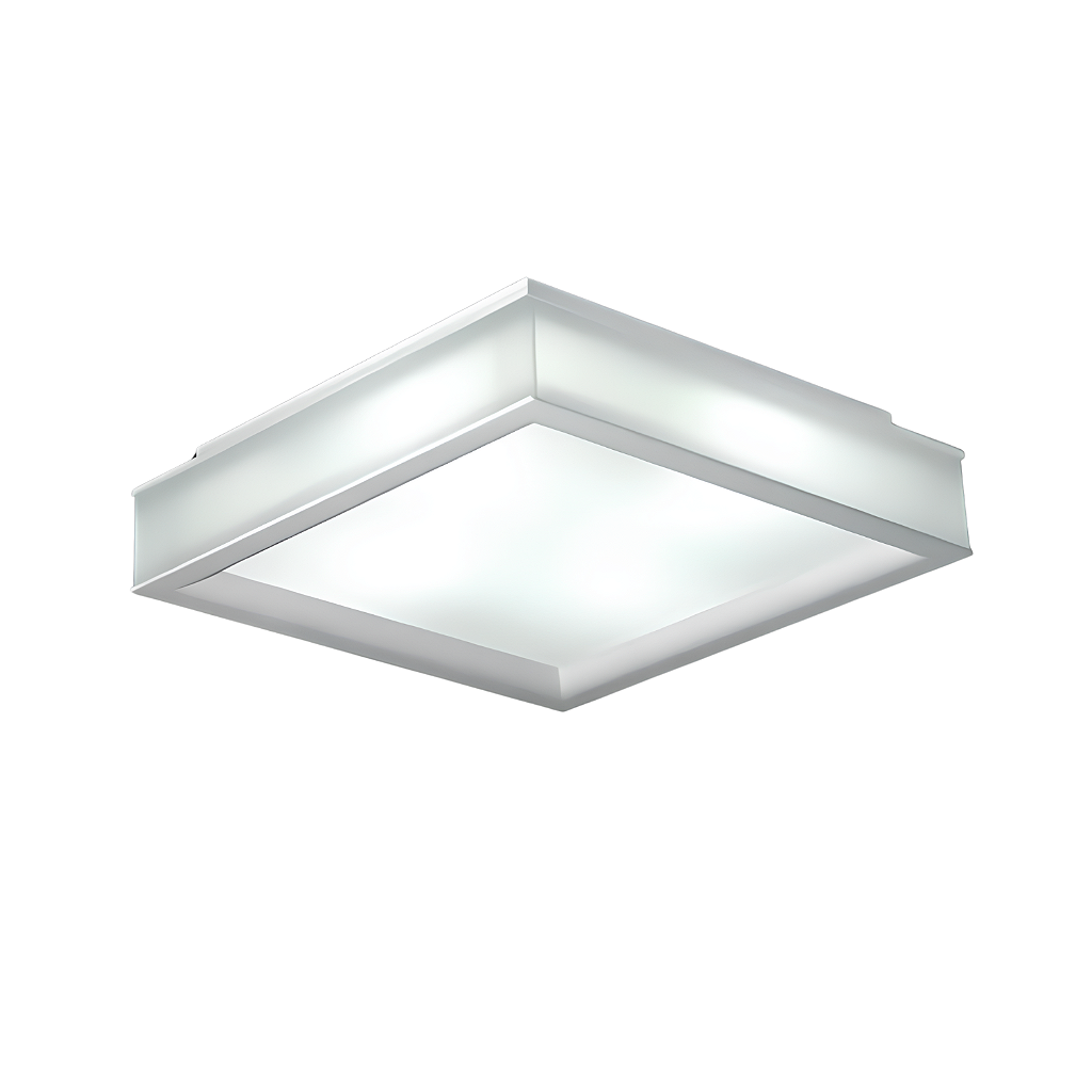 O difusor quadrado de vidro jateado garante iluminação suave e sem ofuscamento.