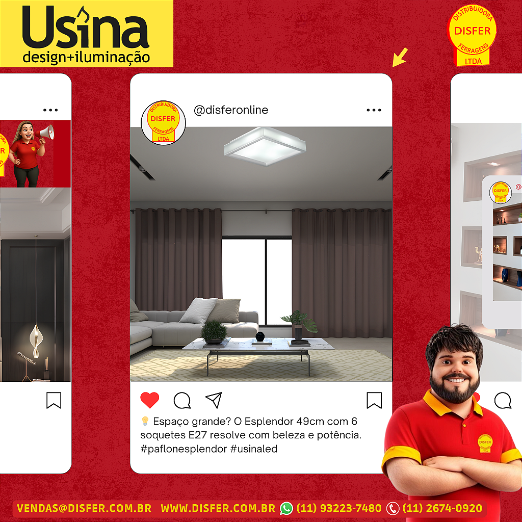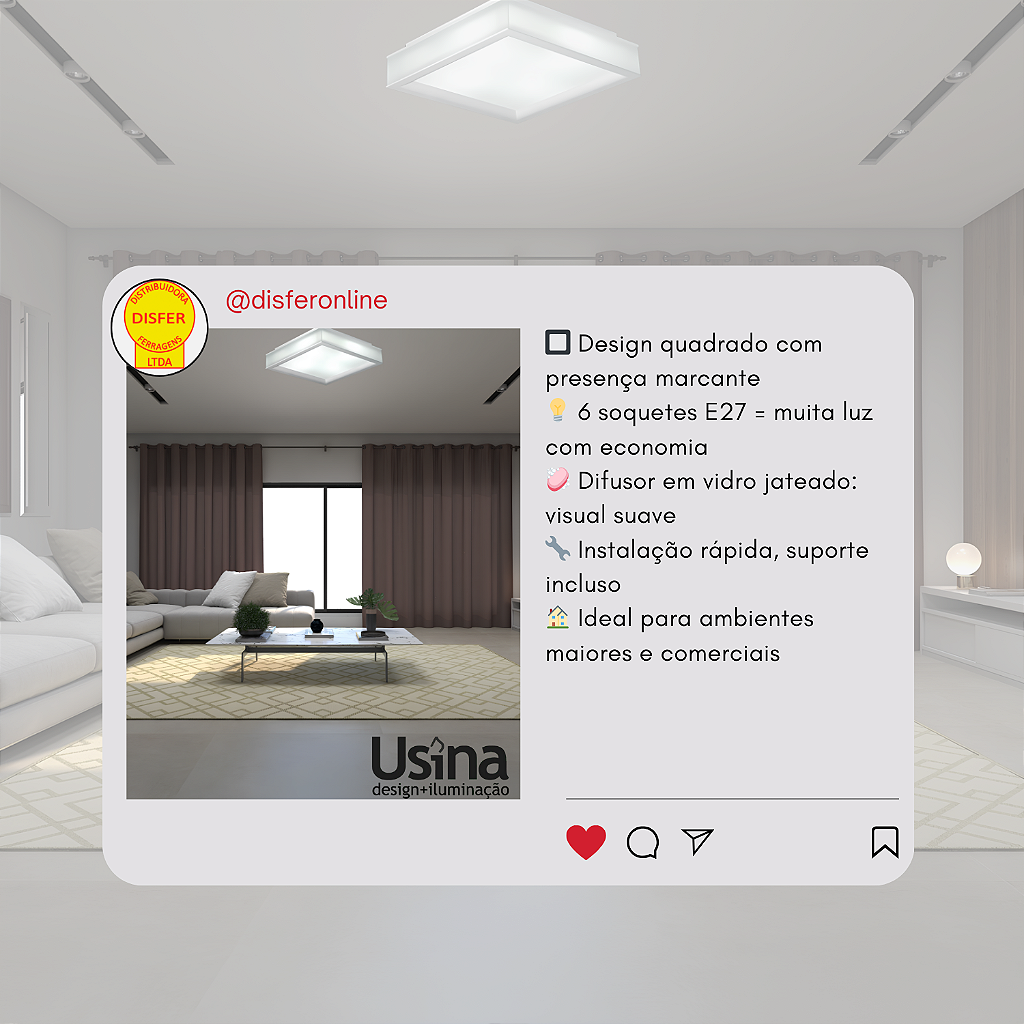 Paflon Quadrado Esplendor 49cm – Usina Design: a escolha certa para quem quer iluminação de impacto com acabamento limpo e instalação sem segredos.