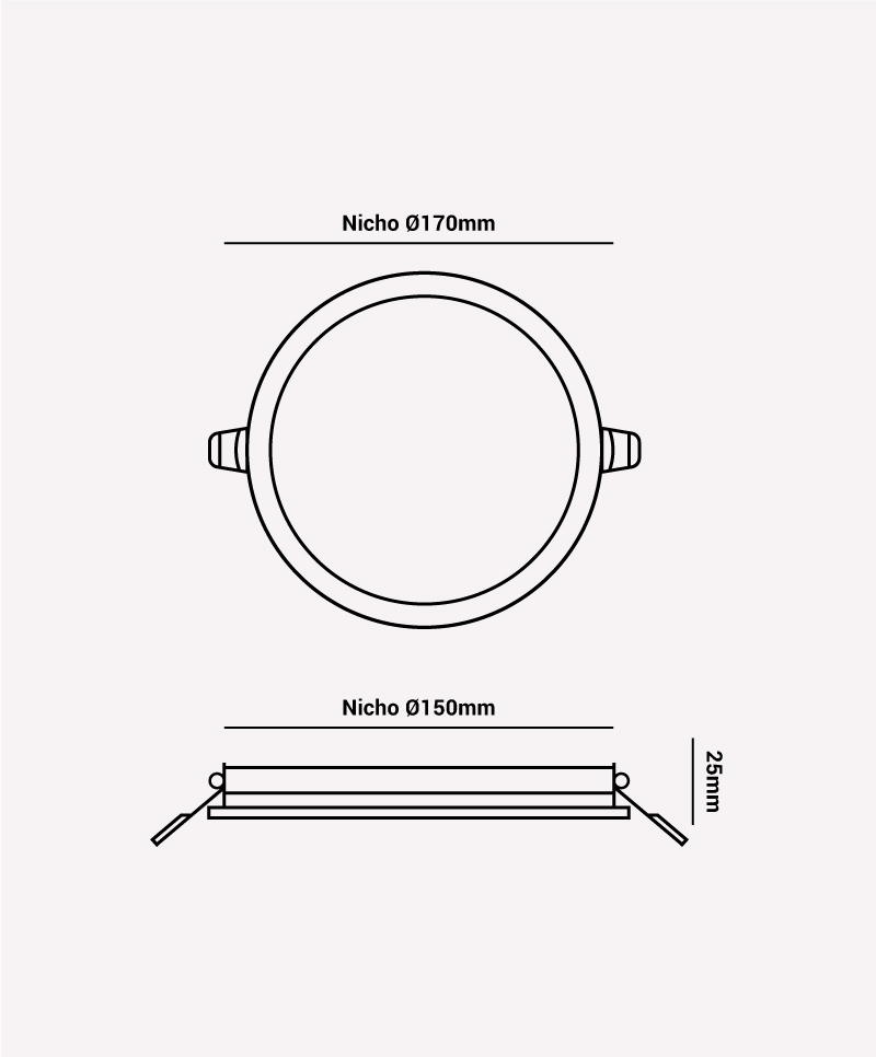 Dimensões (mm): Ø170×25 Nicho Ø155mm