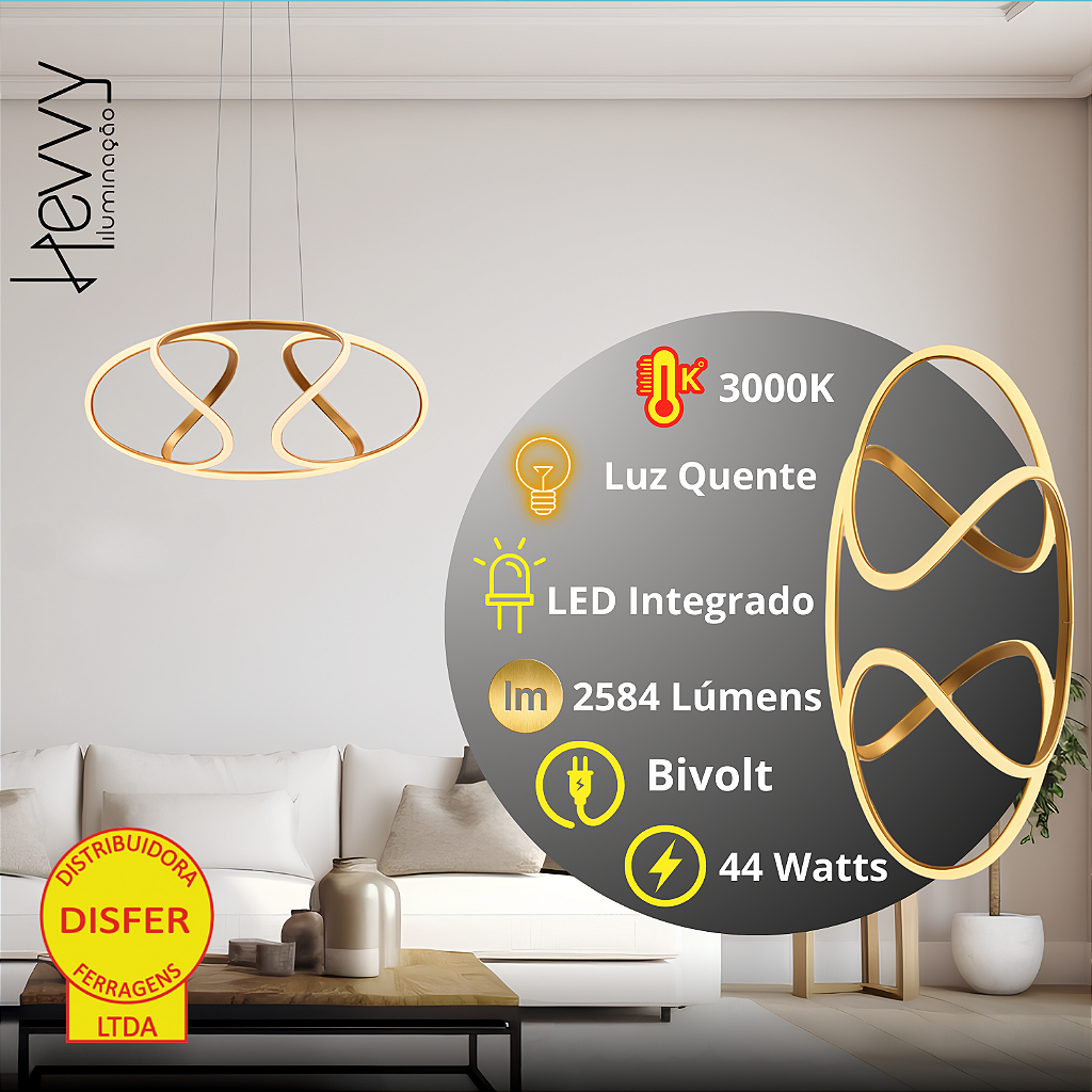 ✨ Pendente Horizon Meeting Gold da Hevvy – o lustre moderno que vai dar o que falar! 🛋️💡