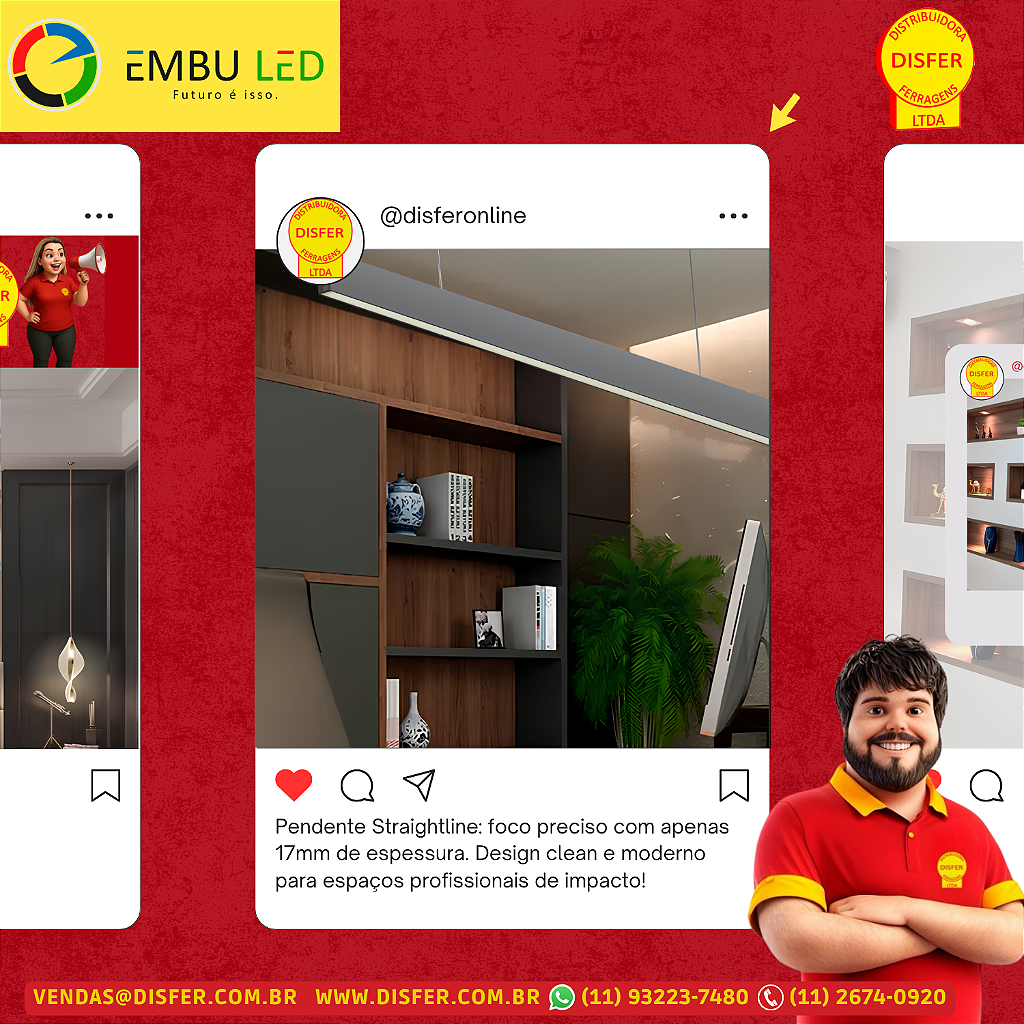 O Straightline da Embu LED é para quem busca uma peça que vá além da função de iluminar: com seu corpo fino de apenas 17mm, ele transforma qualquer espaço com estilo minimalista e iluminação precisa.