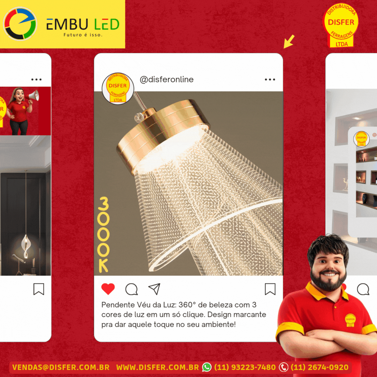 O Véu da Luz da Embu LED une forma e função com um toque artístico. Com design envolvente e difusão de 360°, esse pendente vai além da iluminação: é uma peça decorativa que valoriza o ambiente com leveza e estilo.