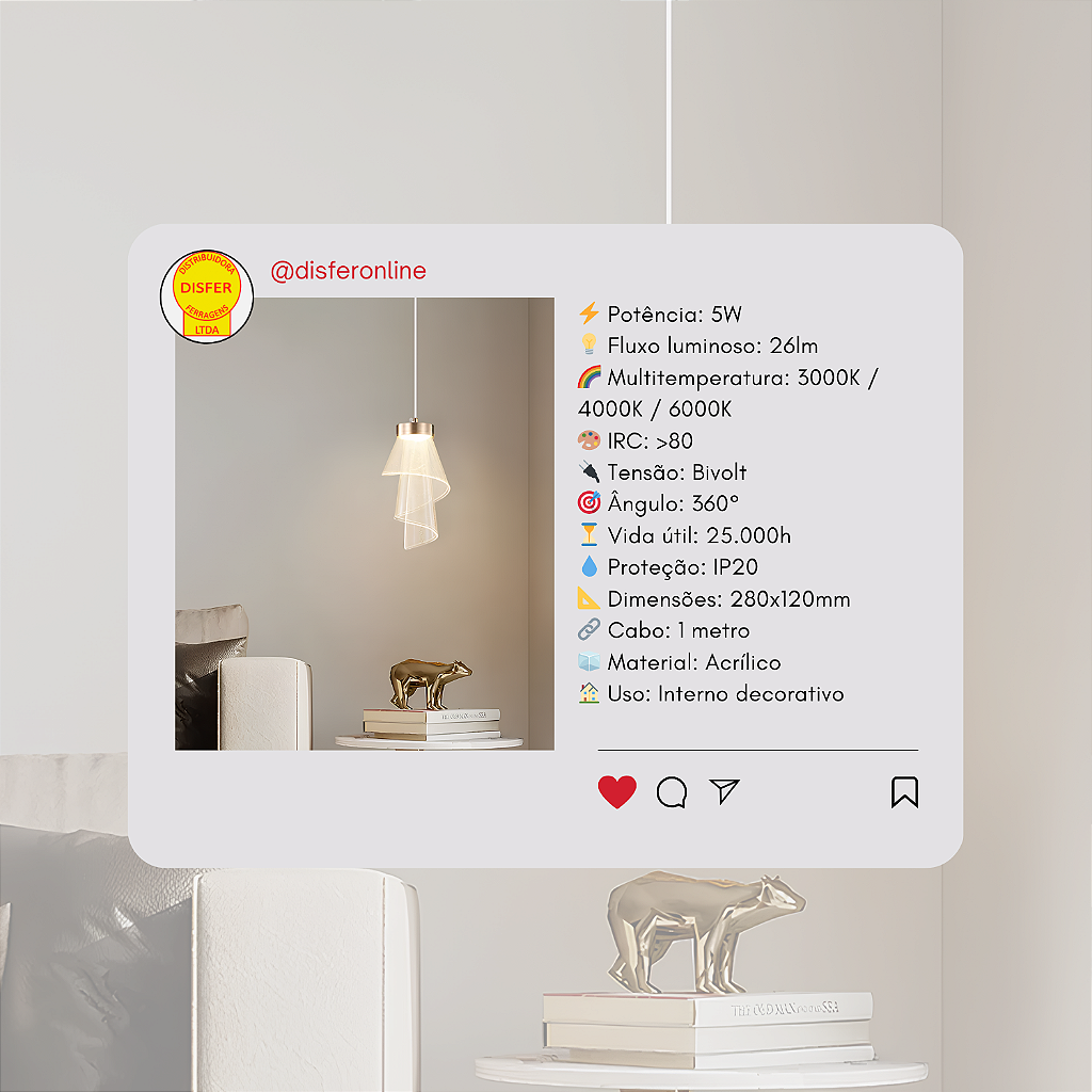 Pendente LED Véu da Luz 5W Multitemperatura Bivolt – Embu LED