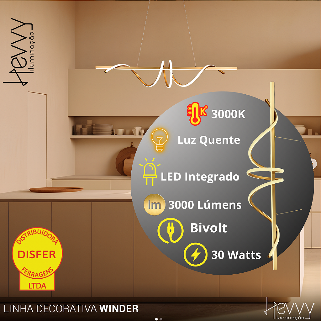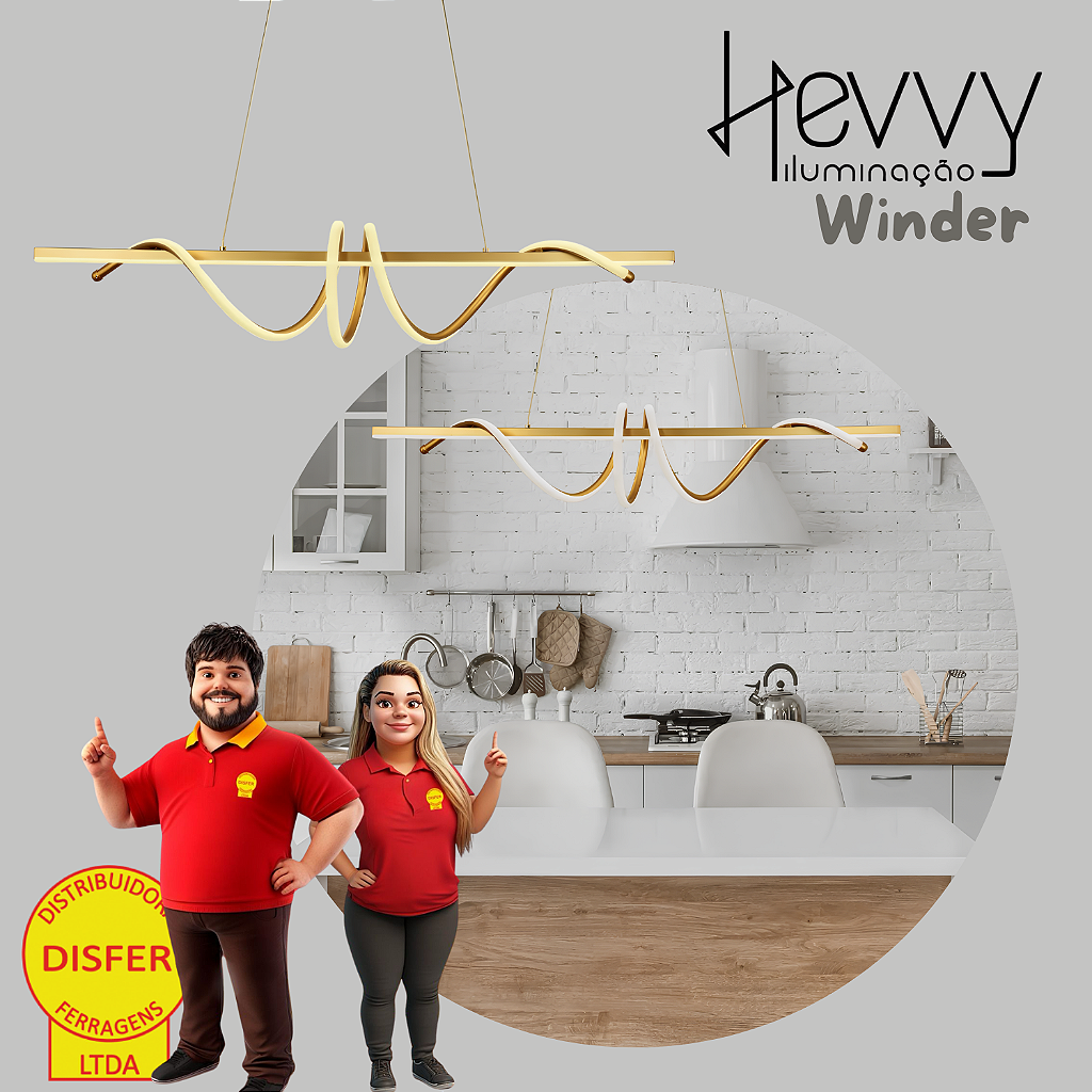 Se o seu teto tá pedindo um destaque, o Pendente Winder Gold da Hevvy chegou pra brilhar (literalmente). Ele é fino, elegante e cheio de presença – tipo aquele acessório que muda o look todo, só que na sua casa!