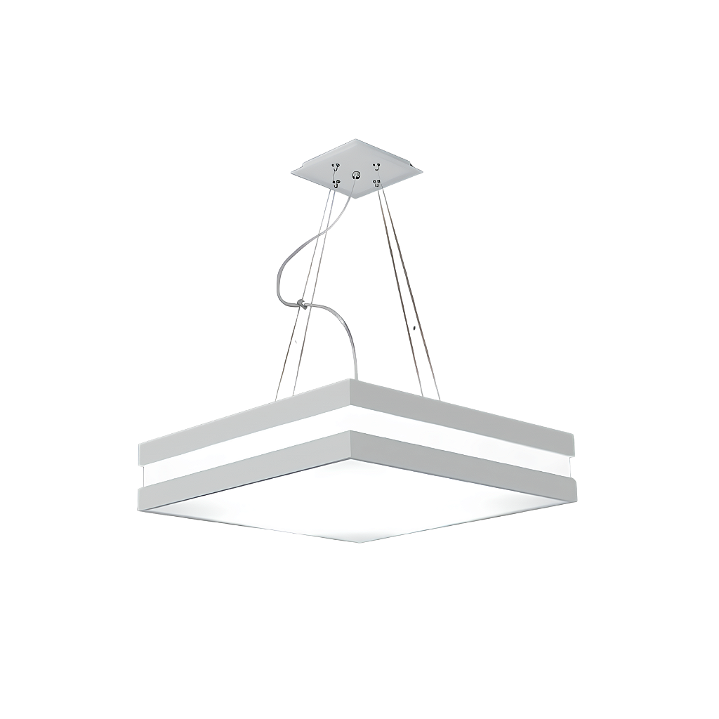 Com 320x320x100mm, esse pendente foi pensado para entregar boa iluminação com estética leve e geométrica. O formato quadrado e a estrutura discreta se encaixam bem em projetos que valorizam linhas retas e organização visual.