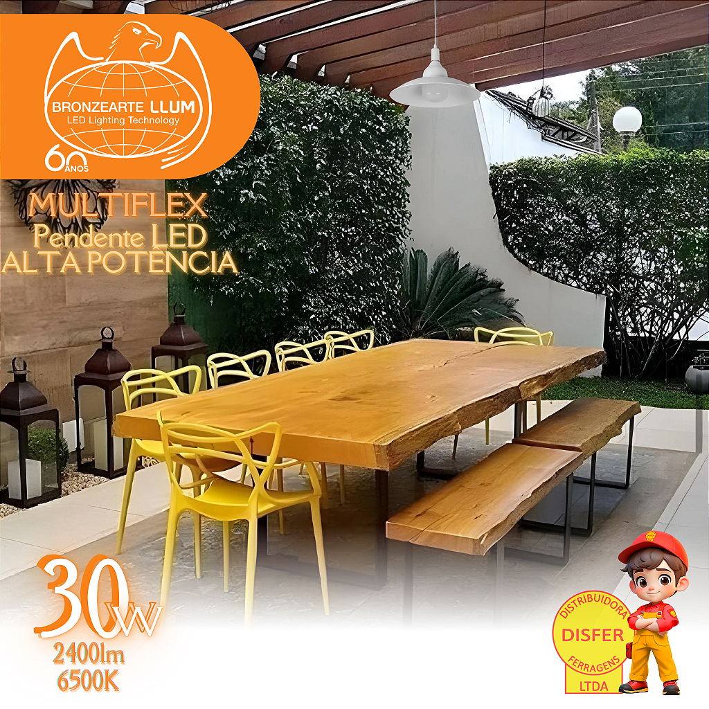 🔹 Iluminação intensa e eficiente! – Acompanha lâmpada LED de alta potência 30W, proporcionando 2400 lumens e uma temperatura de cor 6500K (branco frio), ideal para ambientes que exigem uma luz clara e bem distribuída.