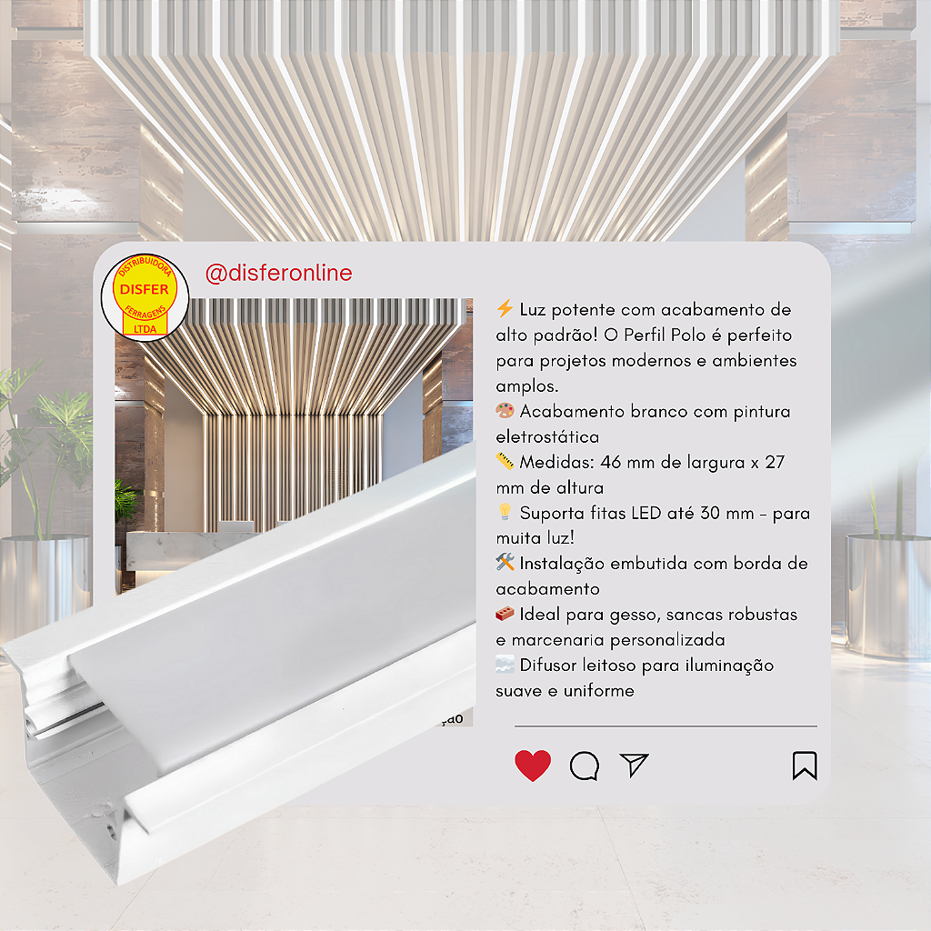 Perfil Polo 46×27 – Usina Design: quando o projeto exige mais luz e mais presença, o Polo entrega. Ideal para linhas contínuas, visuais modernos e aplicações que unem estética e eficiência.